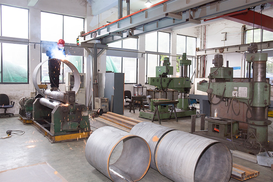 Optymalizacja sekwencji spawania: Rozsądna sekwencja spawania może skutecznie rozproszyć naprężenia i zmniejszyć odkształcenia. Na przykład w przypadku konstrukcji symetrycznych metodę spawania symetrycznego stosuje się do spawania naprzemiennego od środka do obu stron, aby zrównoważyć siły po obu stronach elementu; w przypadku skomplikowanych elementów najpierw spawane są spoiny o dużym skurczu, a następnie spawane są spoiny o małym skurczu, aby stopniowo uwolnić naprężenia. Jiaxing Dingshi Machinery Manufacturing Co., Ltd zatrudnia 60 certyfikowanych spawaczy, z czego 6 liderów zespołów ma ponad 8-letnie doświadczenie i potrafi sformułować optymalną sekwencję spawania zgodnie z charakterystyką komponentów, aby zapewnić standaryzację realizacji procesu.